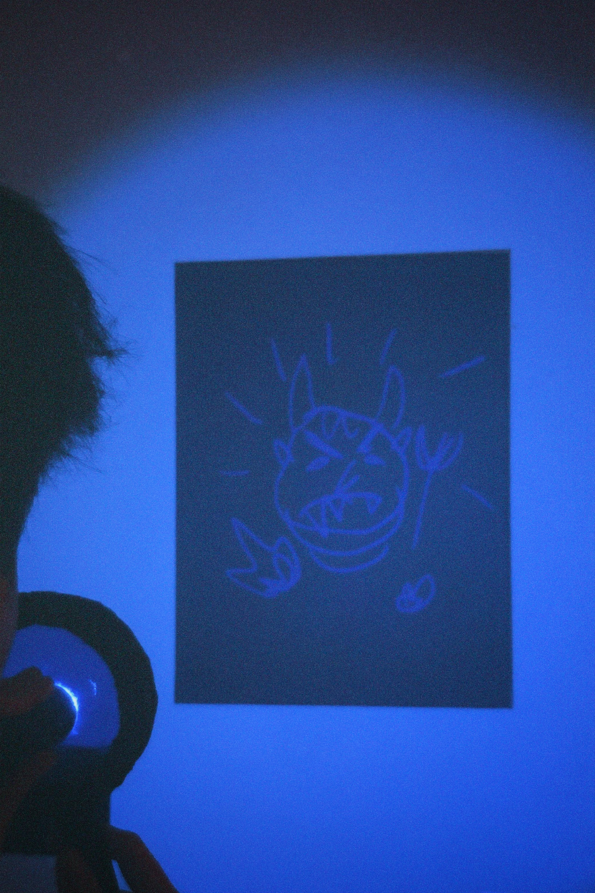 When a red light is shone on the three portraits, the faces of the three people appear. However, when a blue light is shone, the blue light will eliminate the red, leaving the portraits of the mother and stepfather to take on the appearance of two evil demons, while An’s portrait remains unchanged.