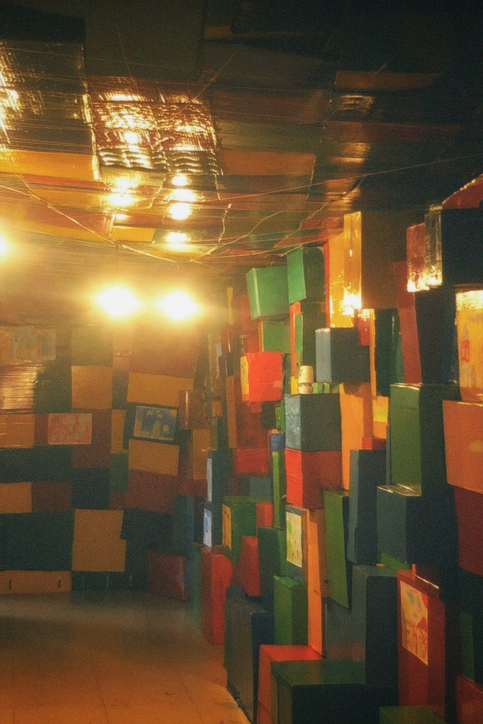 The opening artwork of Room “Bright” is “Tunnel of Light” – a simulation of a colorful childhood world resembling a crayon box, accompanied by drawings we collected from a kindergarten art class.