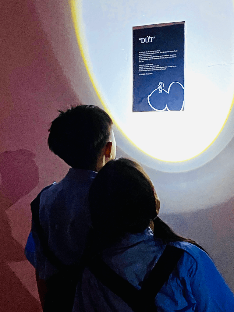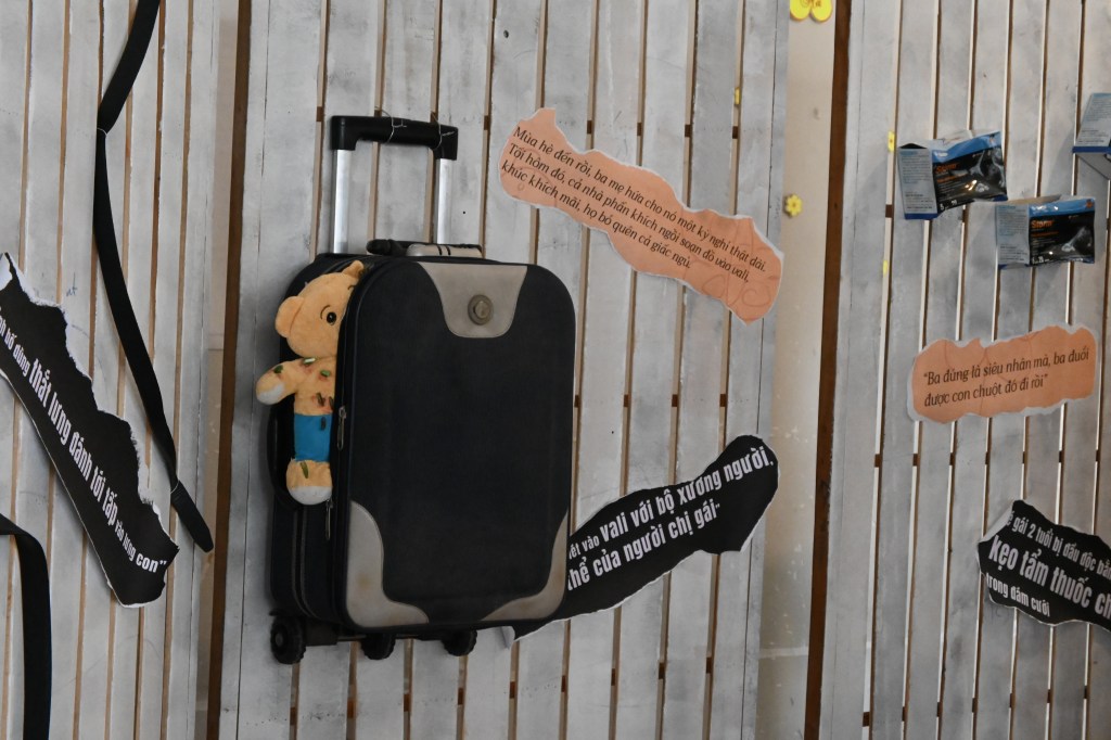 The “Bầm” exhibition is divided into two rooms, each representing a distinct theme: “Darkness” and “Light”. “Darkness” embodies the despair of the abused child and the silence of society, while “Light” symbolizes the life that every child deserves, filled with hope and promise.
