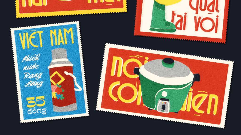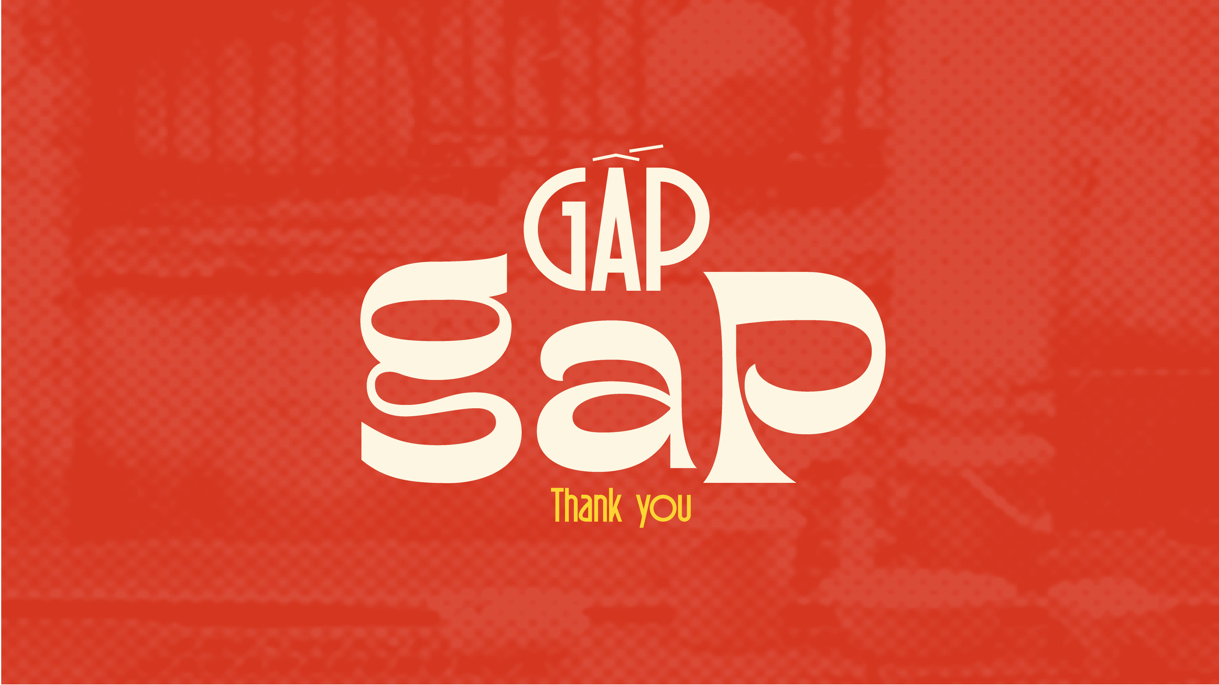 The core value in Gấp Gáp’s brand guideline is “the gaps” , and also the values of Vietnamese people for all generations. Therefore, I chose the main image to be old Vietnamese stamps, with riso-printed images that leave white spaces and gaps in the picture. This is similar to the generation gap, as people often don’t notice the existence of these white spaces, but only care about the essence of the problem – which is the remaining bright colors.